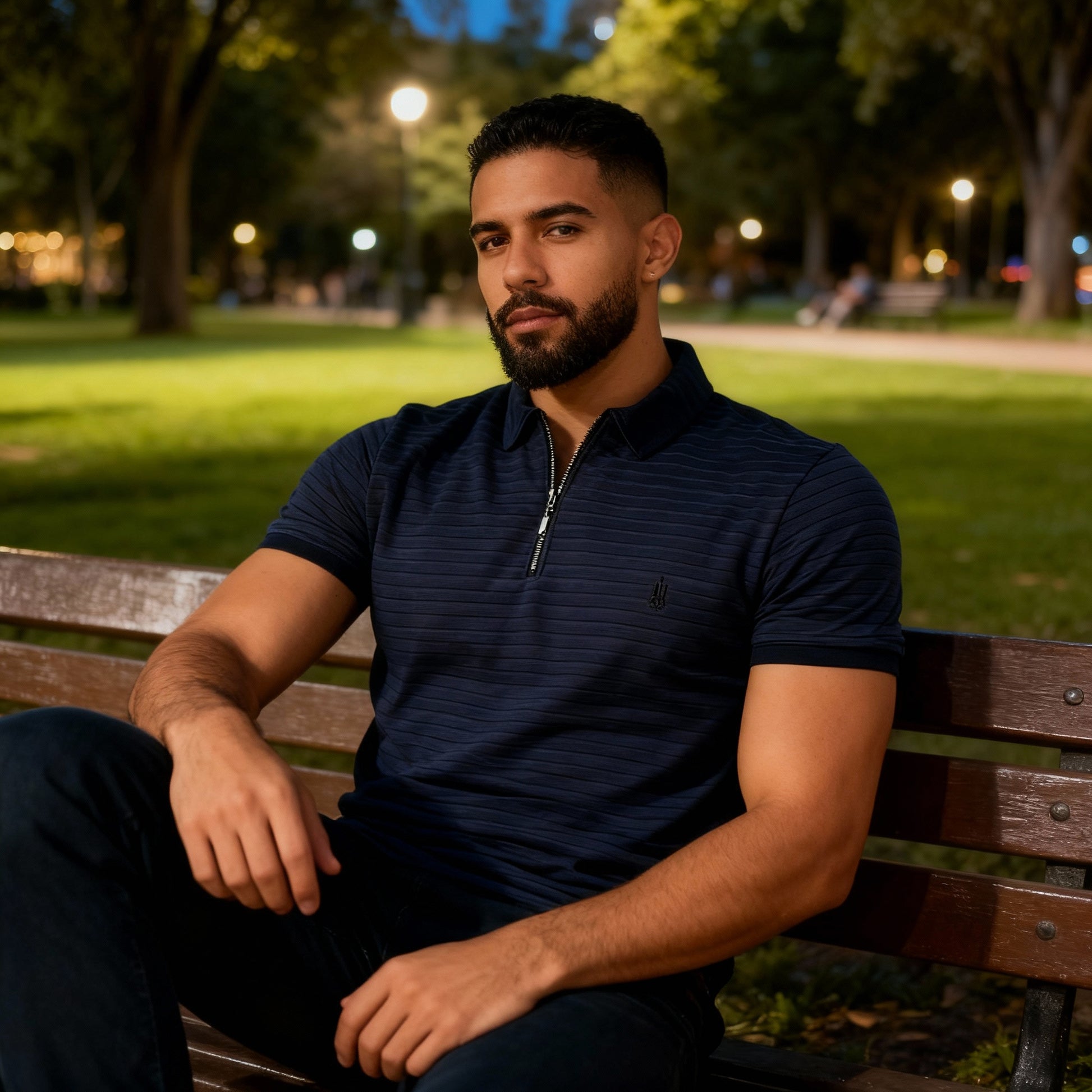 Destaca tu estilo con esta polo azul navy con cierre, confeccionada en algodón premium tipo piqué. Su textura suave y el corte slim fit ofrecen un ajuste impecable que realza la figura sin sacrificar comodidad.