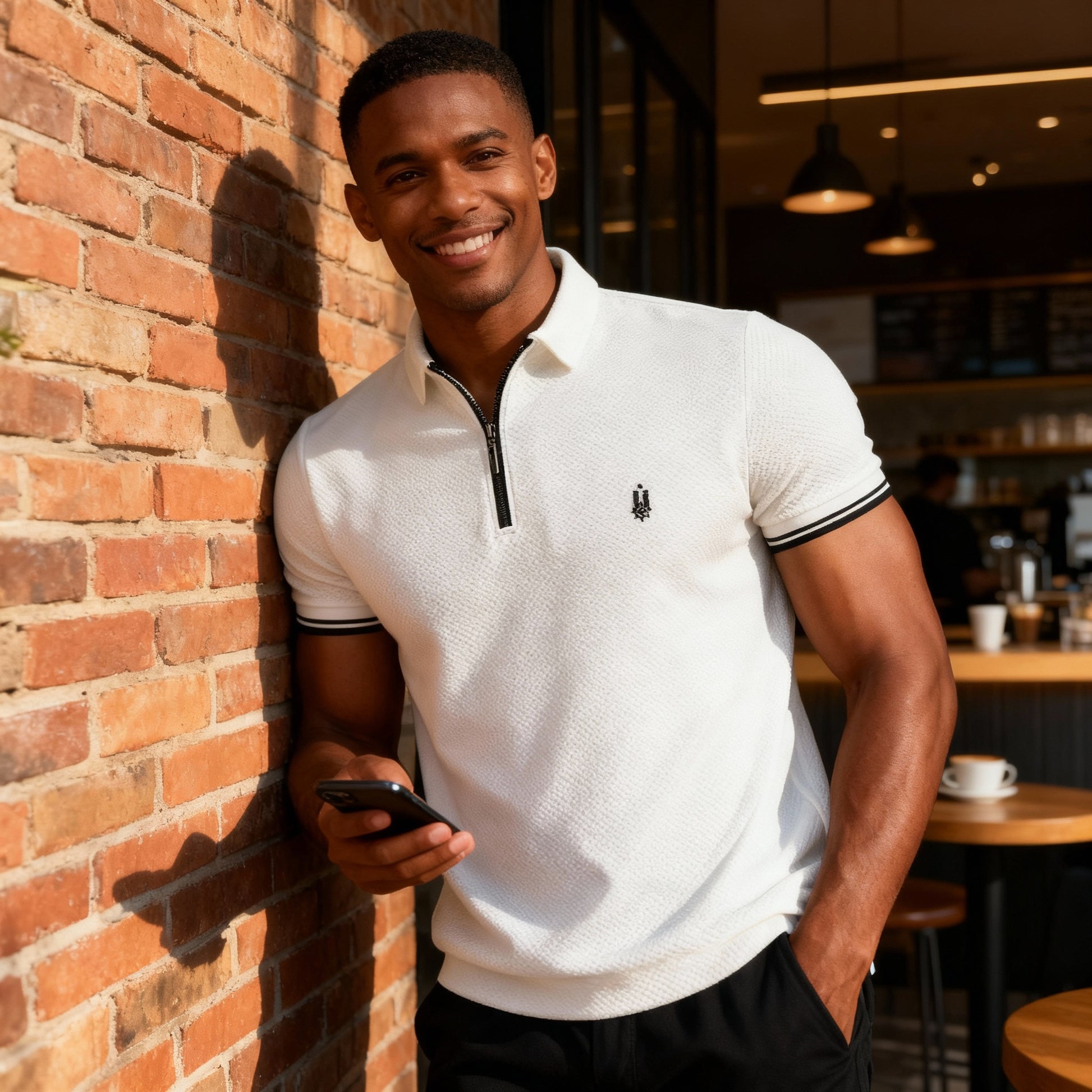Descubre el equilibrio perfecto entre elegancia y confort con nuestra polo textura con cierre.